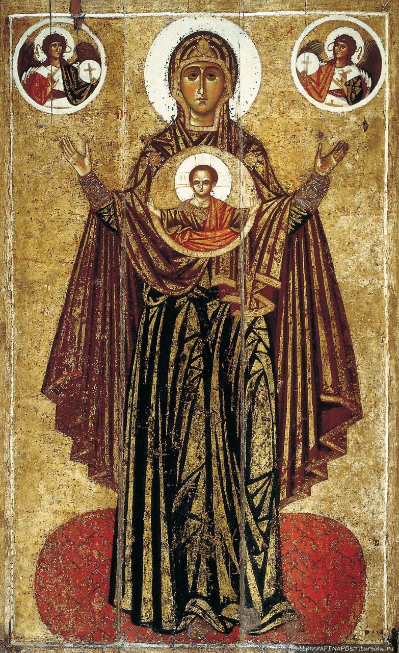 Из стен Спасо-Преображенского монастыря происходит одна из самых ценных икон — "Богоматерь Великая Панагия" или "Ярославская Оранта" — икона домонгольской Руси, сейчас она хранится в Третьяковской галерее. Икона Божией Матери с воздетыми руками и юным Христом на груди восходит к древнему образу Влахернского храма в Константинополе — Богоматери Влахернитиссы или Великая Панагия. На Руси этот образ называют "Знамение".