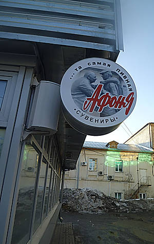 Пока муж делал свои дела, я решила найти памятник Афоне, о котором тут, на Турбине, и читала. Фильм "Афоня" снимался в Ярославле, отсюда и памятник главным героям. Так как в поездку мы собрались быстро, все рекомендации о том, как идти к памятнику, я не успела перечитать. Запомнила лишь одно слово-ключ — "медведь". Полагаясь на язык, который и до Киева доведет, пошла искать Афоню. Так вот констатирую — не все ярославцы знают о том, что такой памятник есть и что этот фильм снимался здесь, в Ярославле. Трое из 4-х мною опрошенных удивлялись:"А у нас есть Афоня?" Зато пароль "медведь" срабатывал безотказно — медведя знают все.