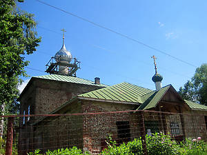 Как-то возвращаясь с пляжа, муж, зная мою любовь к культовым постройкам, сказал: «Хочешь, покажу занятную церквушку, ты ее еще не видела». И правда не видела. Вот уж бы не подумала, что недалеко от пляжа находится еще один храм. Видимо, прежние жители современного Заволжья любили строить святыни близко к воде.
