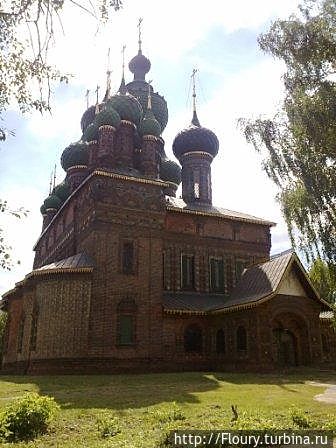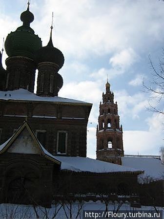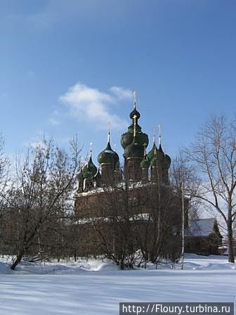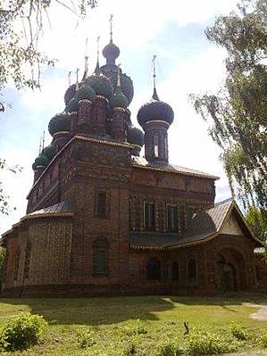 Начну рассказ с достопримечательности, которая встречает нас при въезде в город по железной дороге из Москвы. Главный купол не совсем обычной формы. Да и колокольня, хоть и построенна в московском стиле, но напоминает что-то индийское. Эта же церковь была первой в нашем первом прогулочном маршруте. Дело было зимой. Затем посетили культовое сооружение летом, что б осмотреть росписи. Церковь открыта для посещения в период с Пасхи по Покрова.