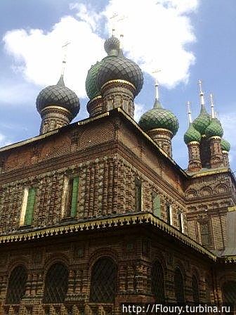 Ансамбль состоит из основной церкви Иоанна Предтечи, колокольни и Святых ворот. Грандиозная по размерам, фантастическая по силуэту церковь выглядит настолько необычно, что появились даже легенды, что ее строили то ли голландские, то ли бухарские зодчие. Но на самом деле у церкви Иоанна Предтечи в Ярославле нет ни одной детали, несвойственной русскому зодчеству, и не использованной ранее.