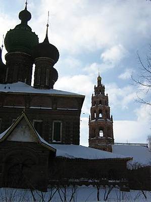 Мы пытались разгадать надписи в церкви. Более-менее нам это удалось. После осмотра Церкви Иоанна Предтечи по берегу Которосли прошлись в Коровники, что б полюбоваться прототипом. Котросль — речка, приток Волги. Существует легенда по поводу ее названия. Она гласит, что дали притоку Волги такое название люди все того же кн.Ярослава. Скорее всего, они поднимались по Волге и речка была у них слева. Так и нарекли — та, что находится слева...:) Место, где Которосль сливается с Волгой называют Стрелкой. С этого места виден ансамбль церквей в Коровниках.