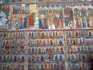 Расписывала его в 1694-1695 и в 1700-х годах артель из 16 лучших ярославских мастеров под руководством Дмитрия Плеханова. Это целая энциклопедия евангельских и библейских сюжетов. Стенописи церкви Иоанна Предтечи в Толчкове стали высшей точкой развития декоративно-повествовательного стиля ярославской школы живописи конца XVII – начала XVIII в.