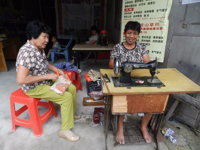 Иду бреду по старинной улочке, уворачиваясь от мопедов и подобного им транспорта. Чем дальше я углублялся, тем всё более и более меня поражали дома и сам город. Улочка, по которой я шёл, в прежние времена считалась центральной. Колониальные здания отдавали былым великолепием. Но это всё в прошлом! В настоящем всё и везде выглядело на редкость непрезентабельно. Отовсюду веяло разрухой, нуждой и какой-то безнадёгой. В восточной части острова Хайнань расположен космодром. На материковом Китае одних только метрополитенов на сегодняшний день более тридцати. Не счесть количества скоростных железных дорог, аэропортов, новых городов и всего-всего остального ультрасовременного. На самом Хайнане построена первая в мире скоростная железная дорога, замкнутая в кольцо. Благодаря ей получили развитие многие города и посёлки острова. Однако, увы, Ячжоу счастье обошло стороной, и потому здесь, что называется, "конь не валялся". Дождливо-угнетающая погода как нельзя лучше добавляла мрачных красок и такого же настроения. Если в Санье и в Хайкоу мне доводилось видеть людей сплошь и рядом состоятельных, от которых в глаза брызгало богатством, то здесь те же самые китайцы выглядели куда менее эффектно. Я подходил, здоровался... Старики даже не понимали, что я их фотографировал. В противовес им дети въезжали в ситуацию быстрей. Я заглядывал в кафешки. Выбор еды был куда менее интересным. Что либо пробовать как-то не захотелось. В лавках торговали тоже не пойми чем.Возле одного единственного здания происходило что-то похожее на ремонт либо на строительство. Ну подумаешь невидаль, скажет читатель. Так то оно так, вот только как раз напротив этой стройки располагался медпункт. Какое-то время я постоял и посмотрел, что и как там происходит.