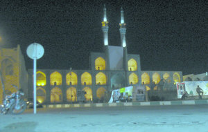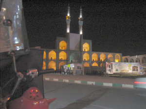 Но самая проблема была с отелем. Отель мы забронировали ещё в Ширазе по телефону, и напрягли для этого девушку из нашего ширазского отеля. Потом время от времени по дороге мы туда позванивали, предупреждая что приедем поздно. Однако когда мы всё-таки приехали после полуночи - в отеле уже мест не было. Как это обычно в Иране, нас проводили к соседнему отелю, но там (о ужас!) оказались грязные простыни, и женщины завопили. С четвёртой попытки мы прибыли наконец в отель, который нам рекомендовал наш водитель - и угадали. (об отеле будет отдельно). После нескольких раундов торговли мы даже сбили цену, хотя всем хотелось поскорее спать после утомительного путешествия. Мы дали водителям ту прибавку, которую они просили в Пасаргадах, за труды, а утром нас ждал фантастический средневековый город, который бывает только в сказках.