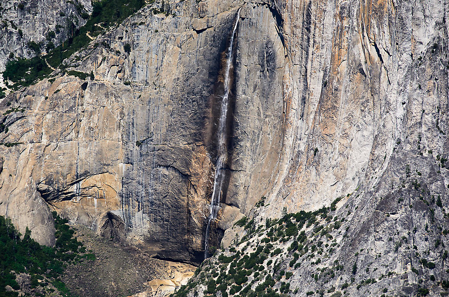 Это невозможно передать фотографией, потому что нельзя передать весь тот поток чувств, когда проехав через сухую и безжизненную калифорнийскую пустыню и ещё более мрачные фермерские угодья, неожиданно выезжаешь к долине Йосемити и видишь, как по стене у горы Эль Капитан летит вниз тонкая струйка водопада. Затерянный, зачарованный мир.