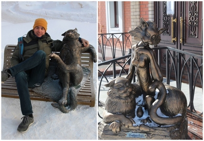 В Йошкар-Оле есть памятник «йошкиному коту» и его кошке. Этот кот, согласно присказкам, жил у Бабы Ёжки – значит кот был ёжкиным, но скульпторы решили переименовать кота в честь любимого города и заменили «ё» на «йо». В честь кота в Йошкар-Оле названы магазины, кафе, гостиницы и даже алкогольная продукция.