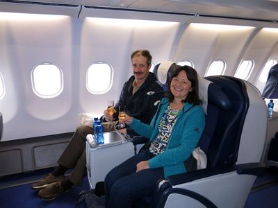 Про самолет. Накопить такое количество миль на бизнесс-класс для двоих туда и обратно — это надо уметь! Саша в этом просто эксперт. Но вот накопить на более короткий перелет ты точно сможешь, ты же постоянно летаешь, тебе бизнесс-класс давно пора освоить. Мы летали на нем и на короткое расстояние на Кайманы, тоже хорошо. Забыла написать, что у сидений еще есть много функций — например, удобная подставка для ног, она регулируется разными кнопками в ручке-пульте и ее можно варьировать, также само сиденье можно по-разному раскладывать, как удобное кресло. Есть и кнопка для автоматического массажа спины. Корое, очень удобно и копить мили действительно стоящая вещь. Мы после перелета взяли машину и сразу поехали без усталости.