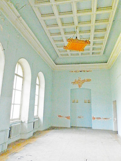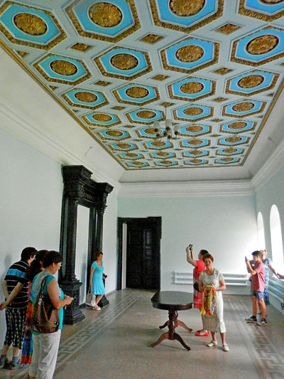 Внешне дворец почти не претерпел изменений, а вот внутреннее убранство его сильно пострадало. Печально видеть облезлые стены, провисший потолок, подпёртый деревянными неотёсанными стойками.