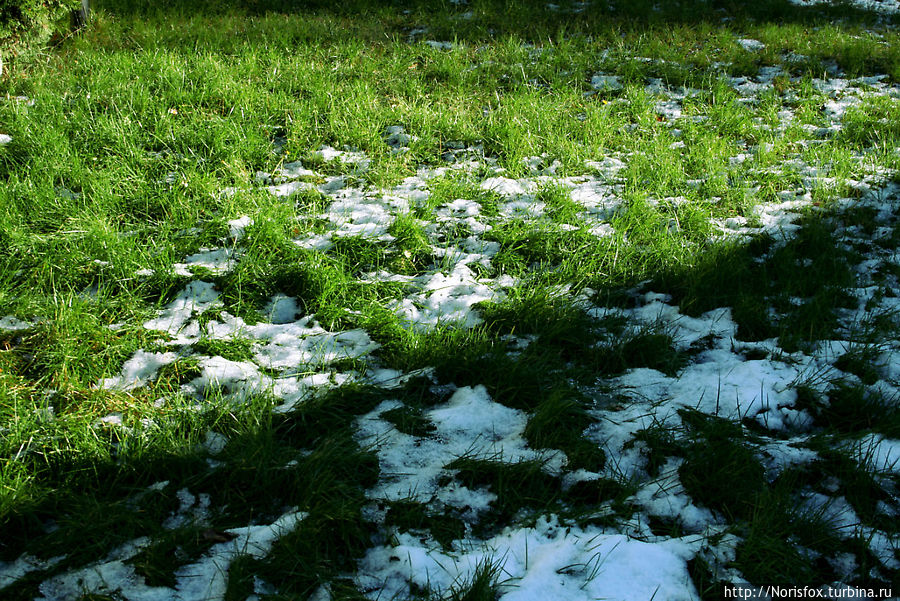 На уличном термометре было + 7, но выпавший дня три назад снег, на лужайке перед домом, еще не успел растаять.