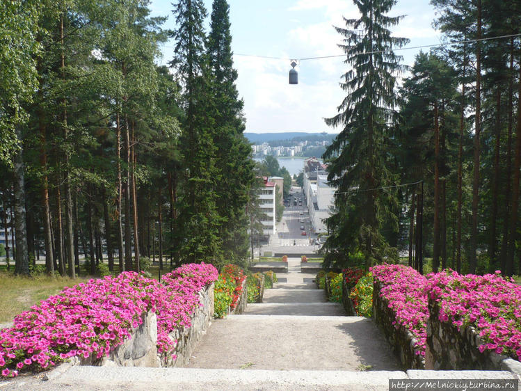 Давно собирался познакомиться с маленьким городком Ювяскюля, который находится в Центральной Финляндии, в 270 километрах от Хельсинки, неподалеку от озер Кейтеле и Пяйяне. Город, по праву, считается «финскими Афинами»: это центр искусства и культуры Финляндии, город университетов, музеев и достопримечательностей. Это небольшой зеленый городок, с населением около 80 тысяч человек. Город славится своей чистотой и опрятностью, свежим воздухом и озерами. Ежегодно Ювясюле посещает большое количество туристов, чтобы насладиться его атмосферой и природой. Долго резервировал туры, но все время не набирались группы в этот замечательный и уютный город. Наконец справедливость восторжествовала и мне удалось отправиться сюда с большой группой наших граждан, жаждущих опустошить торговые центры Ювяскюля. Конечно меня не прельщало удовольствие целый день носится по магазинчикам и я, вместе с такими же любителями путешествий, откололся от группы. Ранним утром мы отправились в большую и увлекательную прогулку. Сразу обратили внимание на очень интересное здание с фонтанами и большим парком.