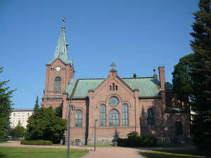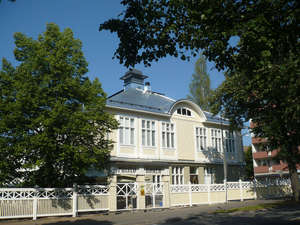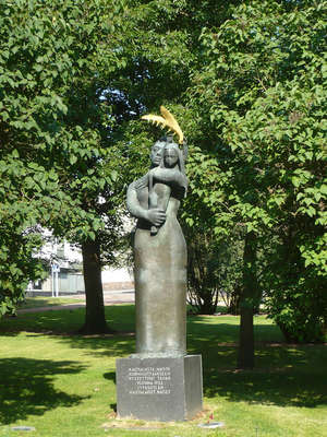 Прекрасный особняк расположился на берегу озера Ювасярви, кто там живет мы так и не выяснили.Прогуливаясь по набережной озера мимо маленьких рыбаков, незаметно подошли к мосту Куоккалу. Мост соединяет два берега озера Ювасярви. Мост еще знаменит тем, что местные студенты изготовили скульптуру акробата и разместили ее между пролетами моста. Дальнейший путь лежал к пассажирской гавани , море яхт, катеров, кораблей впечатляет. Гавань находится буквально в пяти минутах ходьбы от центра города. Главная церковь расположена в красивом парке. В парке установлен памятник Минне Кант. Минна Кант финская писательница, драматург, журналист, автор рассказов, повестей и пьес, первая известная женщина-писатель в Финляндии. Свои произведения создавала как на финском, так и на шведском языке. Минна Кант известна также как общественный деятель, борец за женское равноправие. В знак признания её заслуг перед обществом день её рождения, 19 марта, отмечается в Финляндии как государственный праздник — День равноправия. Здесь же в парке монумент павшим в Зимней войне, скульптура по мотивам Калевалы. Возле Церковного парка начинается пешеходная улица. Немного передохнув решили полюбоваться еще несколькими соборами: современным лютеранским православным и католическим. Дальше решили посмотреть экспозиции Музея Центральной Финляндии и Музея Алвара Алто. После посещения музеев наш маршрут пролег к холму Харью мимо стадиона к башне "Веселине". Поднявшись на башню полюбовались с высоты птичьего полета на город посетили сувенирный магазинчик и по лестнице Неро спустились в город. Посетили местный рынок и немного передохнув отправились в Питер.