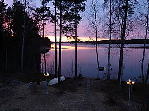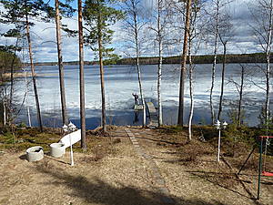 Еще несколько раз выпив кофе в придорожных кафе и посетив супермаркет К-rauta, ровно в 16 час 05 мин по московскому времени были на озере, где нас ждал "бразер" Елизы. Елиза-это хозяйка серии коттеджей на озере Хумалаярви.