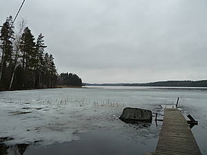 Вот, дальше, сюрприз: озеро в районе нашего домика еще не освободилось от льда, то есть — "фишинг капут". Комнаты оказались маленькие и рассчитаны максимум на 2- х не полных людей и мне придется спать в проходе у печки. В общем, хочешь экономить, а отдых попортишь...