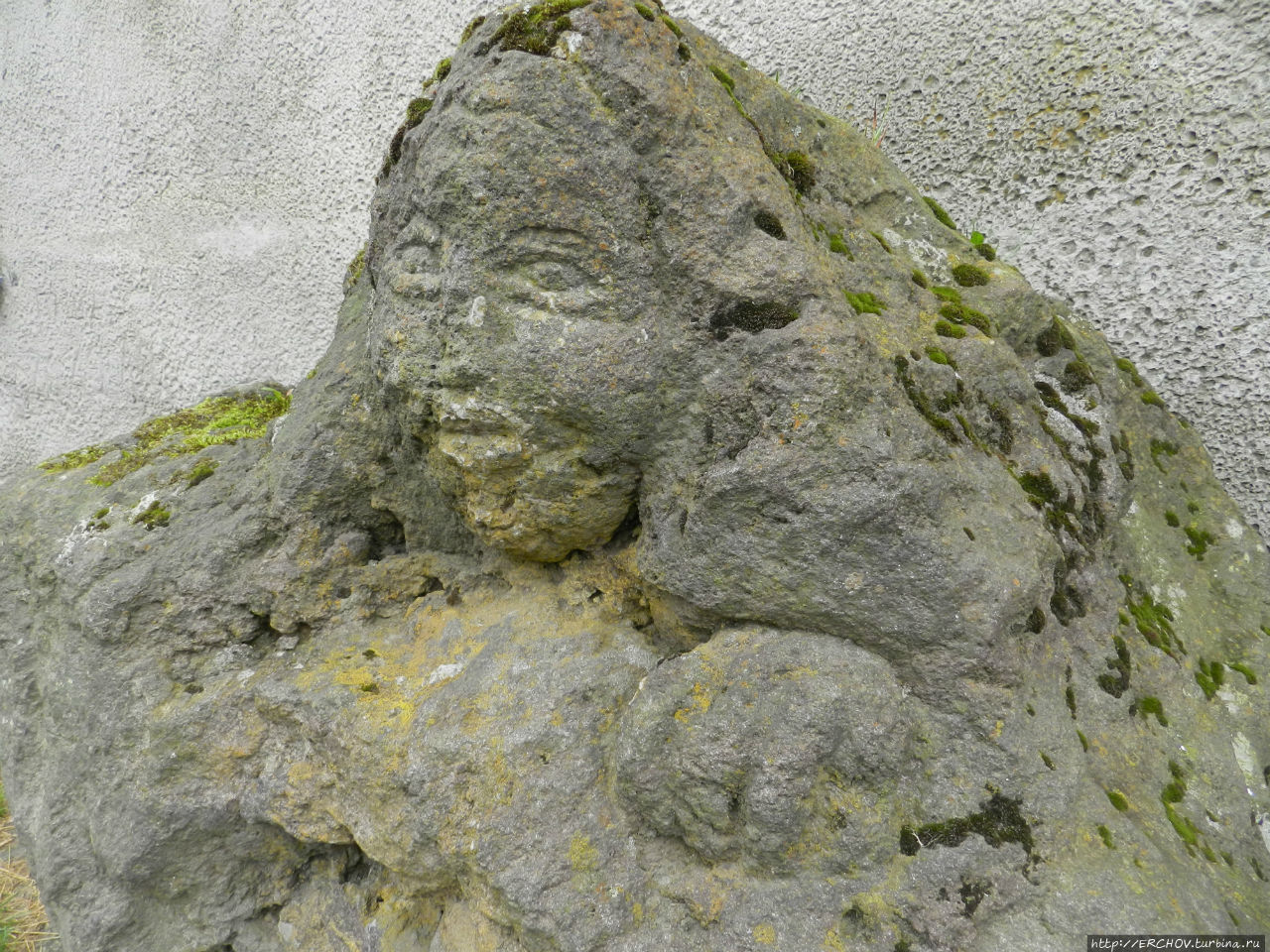 К счастью, с посёлком, в предыдущие дни мы уже познакомились, и после завтрака нашу группу повели в историко-краеведческий музей, куда, как было написано в программе, мы должны были попасть при наличие свободного времени и каких-то ещё неведомых обстоятельств. Одним словом, нам повезло, музей мы посетили. Оный расположен в подвале обычного 4-х этажного дома. Перед входом посетителя встречает каменный лик Кунаширского сфинкса. В своё время краеведы нашли его на склоне одного из вулканов (в музее представлена фотография). Скульптура выполнена из мягкой вулканической породы. Левая кисть сфинкса ещё держится за что-то пальцами, тогда как правая уже не просматривается. Сколько лет изваянию? Этого никто точно не знает. Специалисты относят его к китайской культуре. В любом случае с Японией самый древний кунаширец родственными и культурными узами никак не связан, и это видно по форме лица (во всяком случае это моё личное мнение). По-хорошему, храниться каменный идол должен не на улице а в закрытом помещении. Дирекция музея уже много лет воюет с администрацией посёлка по поводу предоставления оного. Чиновники обещают, но дальше обещаний дело пока не идёт.Нашу группу уже ждут, предлагая проследовать на экскурсию. Посетители в музее бывают не часто, но если туристы приходят, то, как правило, всего на час и в последний день перед отплытием, и посему гиды приучены действовать в темпе вальса. В музее всего шесть залов, но, дабы не создавать толчею, работают сразу два гида.