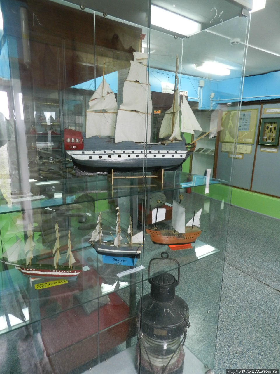 Как экспонаты необыкновенный интерес представляют два больших сосуда (или скорее два бочонка) с узким горлом. В такой посуде японцы хранили рис. Есть здесь и старинные куклы в национальной одежде, обозначающие японских чиновников, гейш и императоров.Исторический зал самый большой. ]Здесь также можно увидеть предметы, связанные с российскими первопроходцами, и с российскими моряками. О них и поговорим.