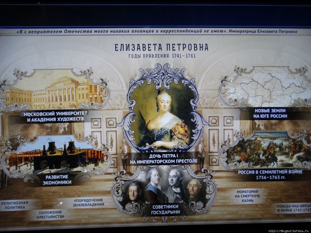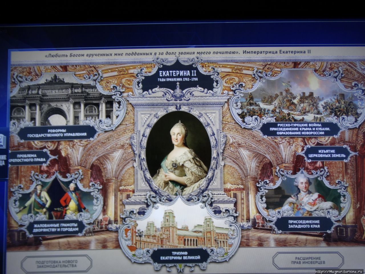 Описание периодов и знакомство с ключевыми лицами каждой эпохи предоставлено в виде постоянно движущихся картинок, видио и аудиоматериалов и прочих нескучных наглядных материалов.