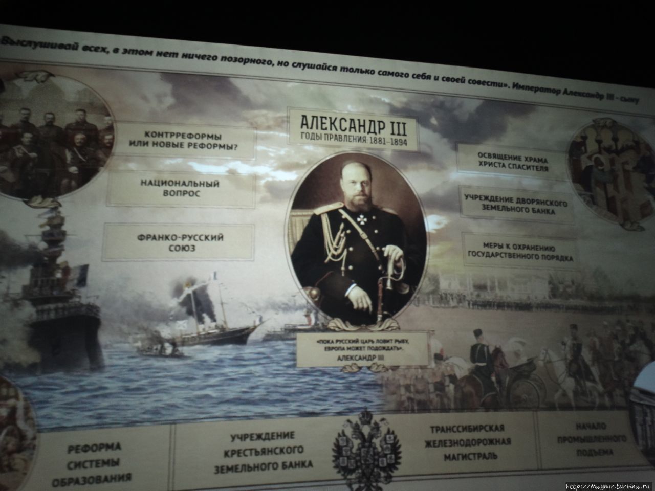 В выставочных пространствах выставлено вся история России: зарождение Руси, татаро- монгольское иго , расширение россйского царства, правление Ивана Грозного, период смуты, Петр Первый и Российская империя- и так вплоть до событий двадцать первого века.