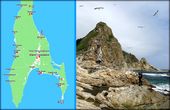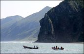 Чтобы добраться сюда нужно плыть на моторной лодке более часа от села Новиково (цифра 7). Экскурсия стоит от 4500 до 6500 рублей за человека. Мы забронировали по 4500, так как нас забирали не из Южно-Сахалинска, а из Новиково, куда мы сами добрались на машине.