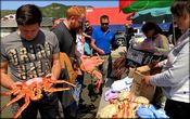 Прямо на трассе Взморья находится рынок, где их продают. Крабов поймали совсем недавно, сварили и заморозили. Мы решили вместо обеда купить несколько штук. Цена от 500 до 3000 рублей за экземпляр. Нежного и вкусного мяса внутри краба очень много. Например, я взял одного за 500 рублей и будучи голодным целиком так его и не осилил.