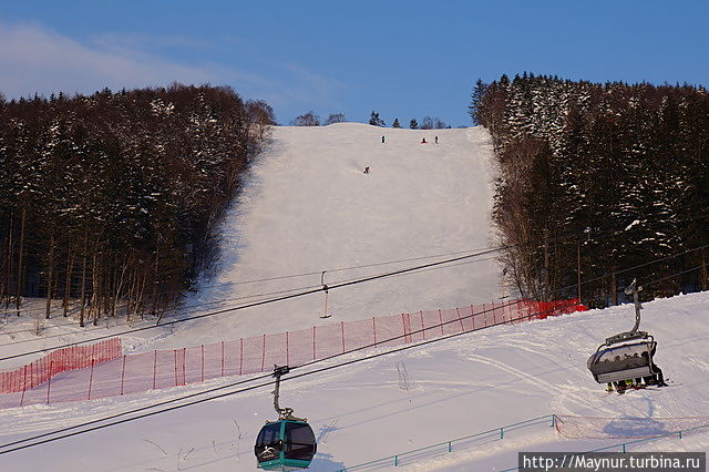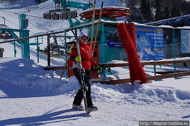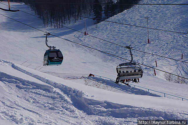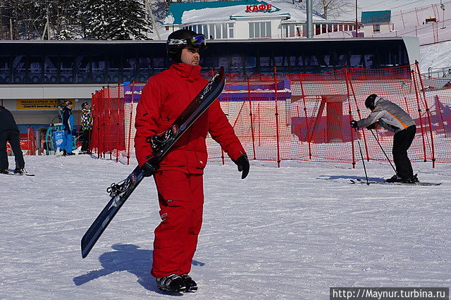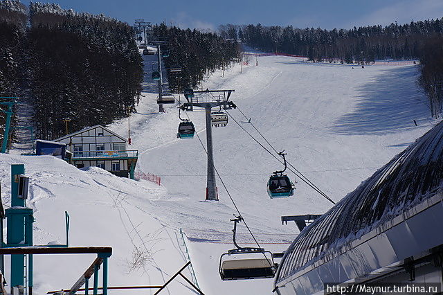 Первый уровень комплекса. Здесь происходит пересадка на следующею канатку до вершины горы.Многие остаются здесь. Высоты для спуска предостаточно. Часть кафе, прокат находятся здесь.