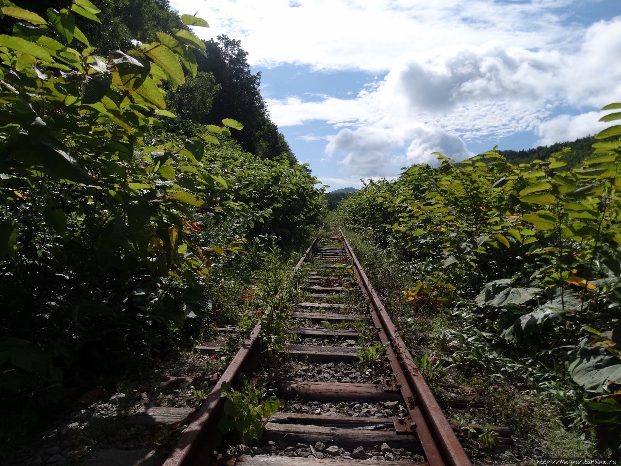 оставить машину возле домика и пешком ( совсем немного) выйти на жел. дор. к перрону . Отсюда до моста предстоить пройти по шпалам около 2.4 км. в противоположную от Холмска сторону.Имеется другой вариант. От жел. дор. станции г. Холмска- пешком. Весь путь приблизительно равен 10 км. Я не ходила. Но расстояние в источниках разниться на 2 км. Получается 10 — 12 км. в одну сторону. Пройти реально.