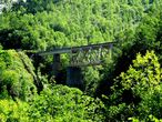 Те же короткие тоннели, та же конструкция мостов, тот же открытый участок дороги между тоннелями. Только наша дорога гораздо короче (1.5 км. против 7и км.) и перепад высоты всего один, но я в восхищении от японских инженеров, воплотивших эту идею на Сахалине.Дорога к мосту : ехать из Ю. Сахалинска по хорошей трассе до Холмска. Из Холмска можно доехать на машине до бывшей ст. Николайчук. Сейчас в этом районе дачи. Проехать дачи до конца по отвратительной грунтовой дороге,