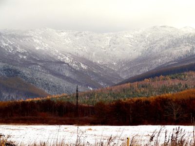 Он там, вдали. Это самый высокий пик южной части Сахалина.