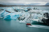 Настоящие маленькие айсберги — одни глубокого синего цвета, другие полосатые — они торжественно парят в бирюзовой воде, пока течение не вынесет их в соленые воды океана. Там, их разбивает волнами другая стихия, и они медленно тают на чёрном вулканическом песке. Причудливые прозрачные формы, порой напоминают фантастических животных, умирающих на берегу. Вот они, геологические процессы — воочию.