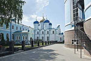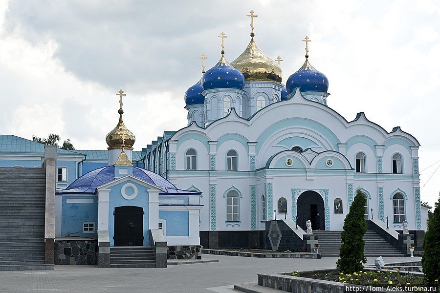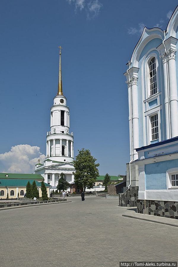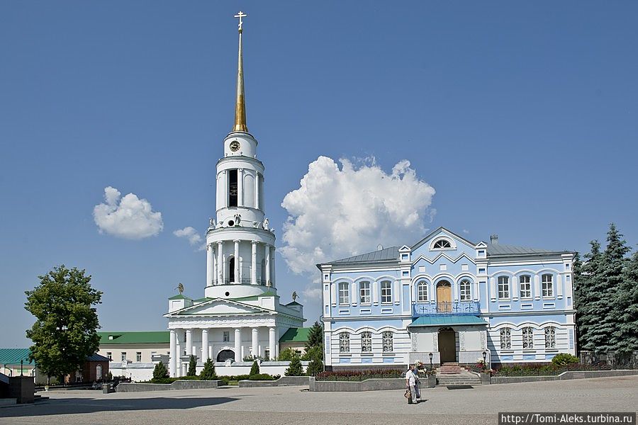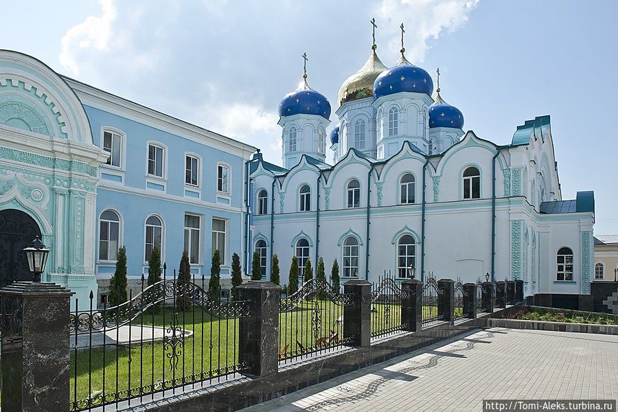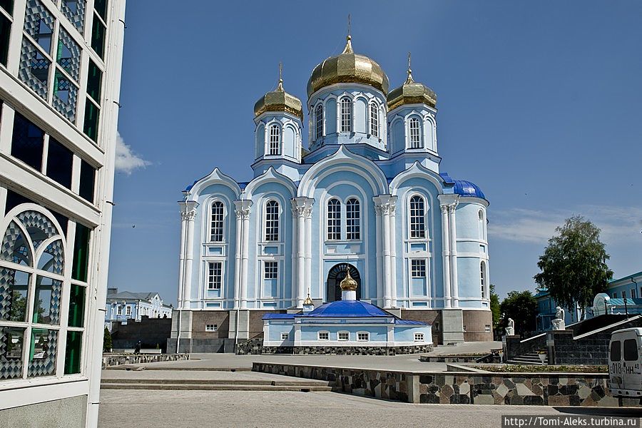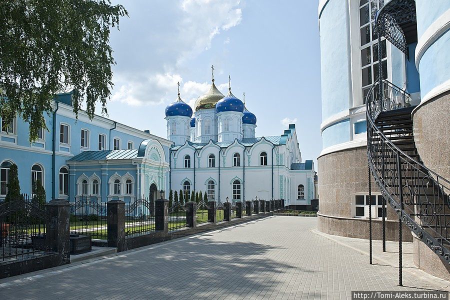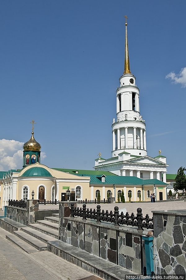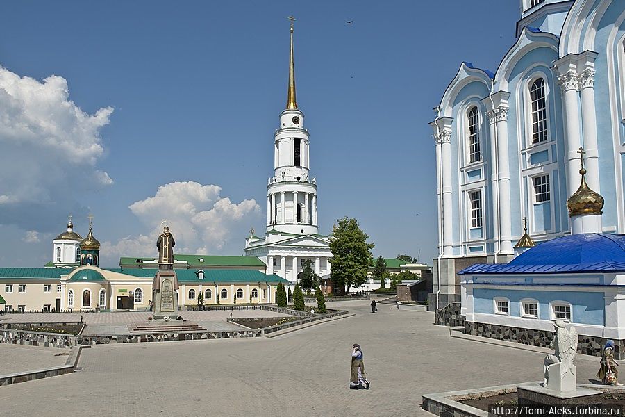 Интересно, что раньше и сам Липецк и Задонск относились к Воронежской губернии. Вокруг монастыря в этих местах очень красивая природа. Я вообще люблю природу России, но — в летний период. Зима — не мое... Интересно, что к созданию внешнего облика монастыря приложил руку известный архитектор Константин Тон — автор храма Христа-Спасителя в Москве. Пятиглавый собор в центре монастыря (см. фото) — его творение...
