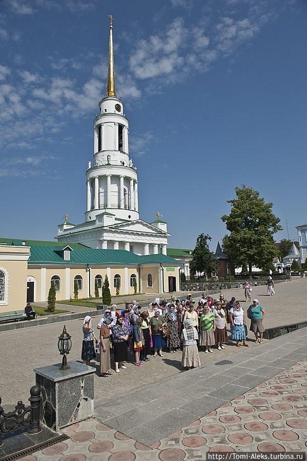 Задонский Рождество-Богородицкий мужской монастырь, основанный в 1610 году, расположен в небольшом городке в Липецкой области, на берегу Дона. Вот уже пятый век сюда приезжают паломники со всей России. Я, как фотограф, ездил туда, чтобы осветить в прессе экскурсионную поездку социальных работников Воронежа в два монастыря. По поведению женщин прекрасно было видно, что религиозных фанатов среди них не наблюдается. Но поехали они все в эти места с познавательной целью. ну, и свечки поставили заодно...