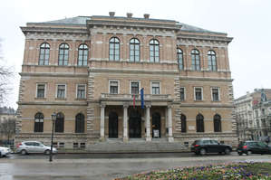 От центра площади перейдем к зданиям ее окружающим. Прямо в центре среди могучих деревьев стоит здание больше похожее на театр. Это ХАЗУ. Сразу и не поймешь , что это за чудо и с чем его едят. Оказывается все просто. Это аббревиатура Хорватской Академии наук и искусства. Занимают ученые не просто дом , а целый дворец, выстроенный специально для этих целей. Из ценных экземпляров, находящихся в этом здании можно упомнить о Башчанской плите, на которой сделана одна из древнейших записей на хорватском языке. Датируется рубежом 9,10 веков.