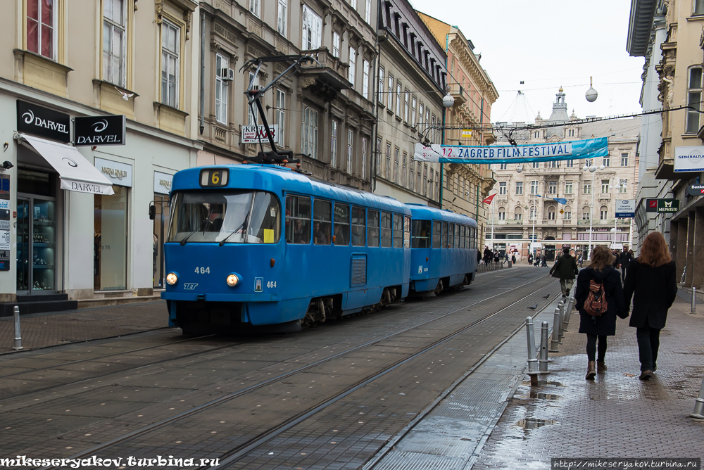 В Загребе до сих пор повсюду ходят трамваи Татра Т3, такие я помню с самого детства. Да и номер тоже из моего советского прошлого — тушинский трамвай №6.)