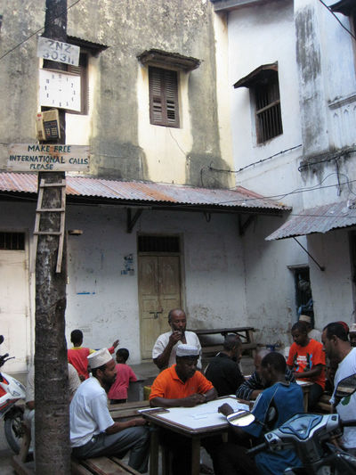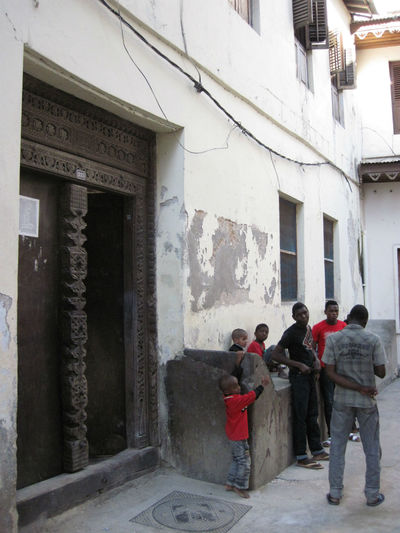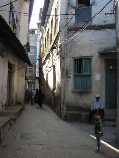 Город Стоун-таун — классический арабский лабиринт из средневековых улиц, у многих домов имеются старинные резные двери, некоторые обиты чеканкой. Спрятаны тут отели и хостелы для евротуристов, местные «хелперы» активно напрашиваются в гиды и вымогают за ненужные услуги шиллинги. Посреди Стоун-таунского лабиринта, есть площадь, где заседает клуб местных старейшин, можно с ними попить кофе из маленьких железных чашечек. Жители лабиринта ведут сувенирно-продуктовую торговлю, сладко-гнилостный аромат и вековая скука разлиты в воздухе — старики в белых одеждах и депрессивные жирные мухи… Историческое время на Занзибаре остановилось лет 500 назад, нет здесь напряженных африканских ритмов…