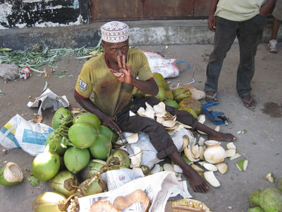 Реальная жизнь Занзибара далека от беззаботной «Акуна Мататы». Вип-пляж Нунгви обслуживает одноименная деревня, населенная гастарбайтерами из континентальной Танзании,– глиняные землянки и скудный базарчик, мухи ползают по опухшим спящим ветеранам «акуна мататы», — на вид дряхлые старики, хотя возраст лет 40, быстро тут капает сонное время экваториальной жизни...
