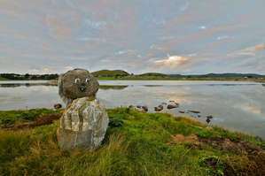 Примерно в районе Aksdal мы сделали очень грамотное ответвление в сторону моря с E39 на Е134 и застряли на несколько часов в районе города Avaldsnes. Эта маленькая деревушка является одним из наиболее значимых исторических мест во всей Норвегии. Здесь король Харольд Прекрасноволосый (Harold Fairhair) в 9 веке устроил свою резиденцию. Место было выбрано неслучайно, еще с железного века в этих местах селились люди. Основной интерес для посетителей здесь представляют церковь Святого Олафа, остров Буккойя с деревней викингов, а также суперсовременный исторический музей. К церкви почти прислонена гигантская мегалитическая каменная игла (высотой 5-6 метров), отступая от нее см на 5-10 не более. Существует поверие о том, что когда игла наконец-то дотронется до стены церкви, в мире наступит конец света. Более смешной версии я пока еще не слышал, все зависим от этой каменной иглы :-)