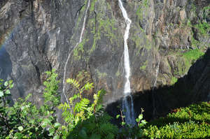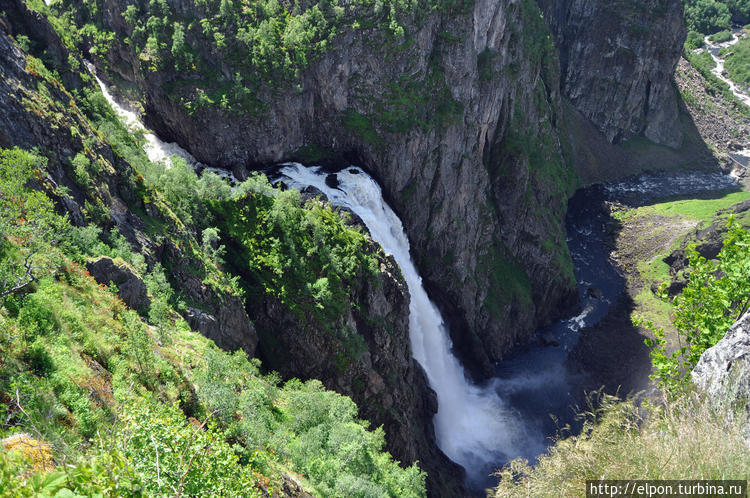 Бурлящая река Бьёрейа, вобрав в себя воду множества речек и ручьев, рожденных на плато Хардангервидда, низвергается с высоты 182 метров в узкое горное ущелье.