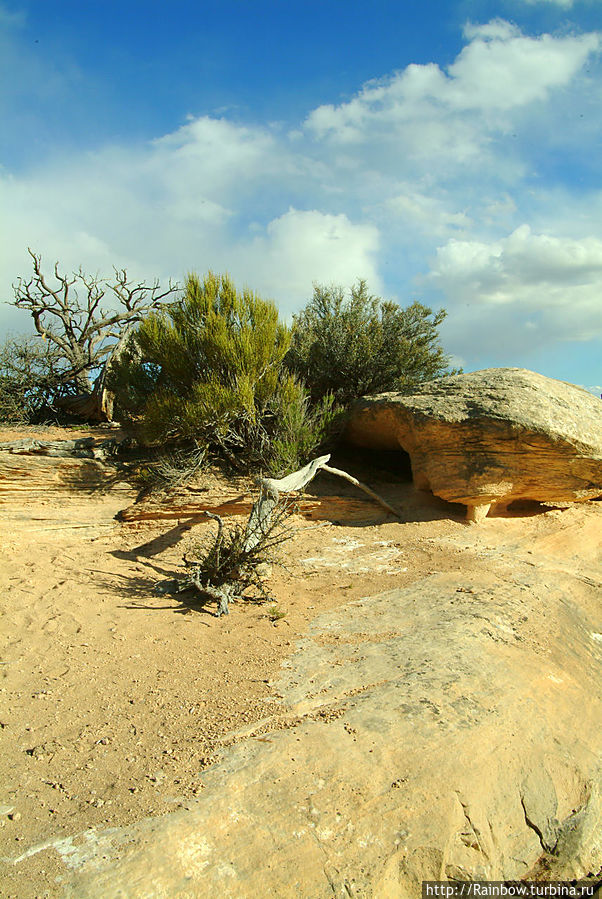 И в заключение, вопрос на внимательность. Если задуматься, что этот парк находится в Юте, в районе "Четырёх углов", что его отличает от всех остальных рядом находящихся подобных природных шедевров? Если вы не знаете ответ, то вернитесь к начальным фотографиям. Правильно — цвет. Вся земля, скалы и камни, находящиеся за его пределами представляют палитру красно-оранжевых оттенков. И только здесь, на этой территории все скалы и мосты — белые. Ну, может быть с чуть розовым налётом... Юта нас снова удивила.