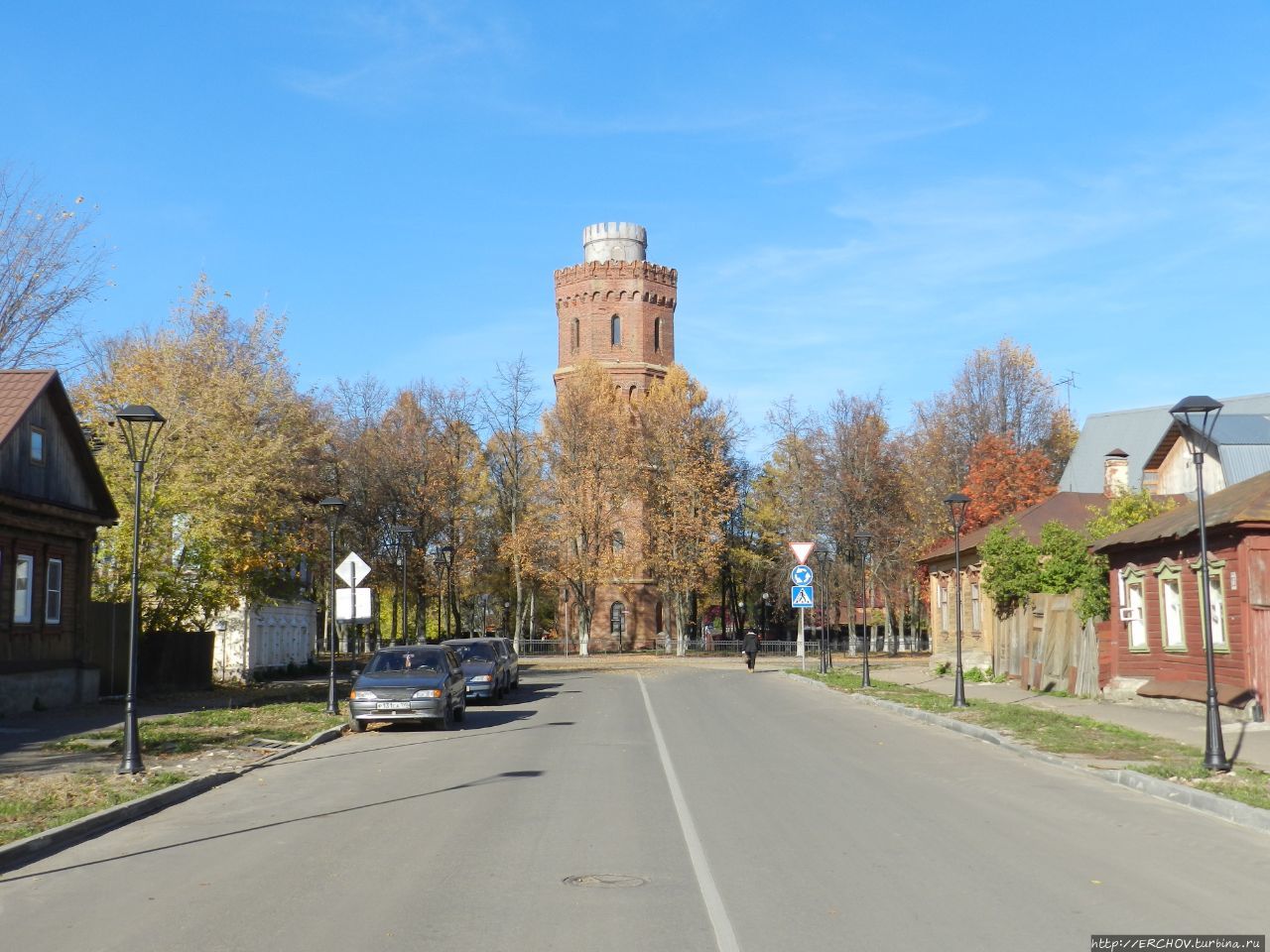 Направляясь обратно, выхожу к Водонапорной башне. Таковая, словно маяк, просматривается в центре со всех сторон, являясь одной из главных достопримечательностей города.