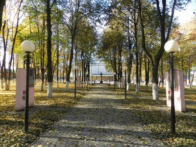 Парковая алея выводит меня к бюсту Героя Советского Союза Н.В.Леонову. За ним дом культуры носящий его имя.