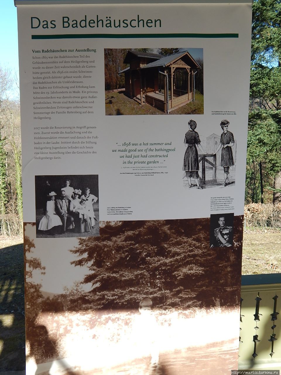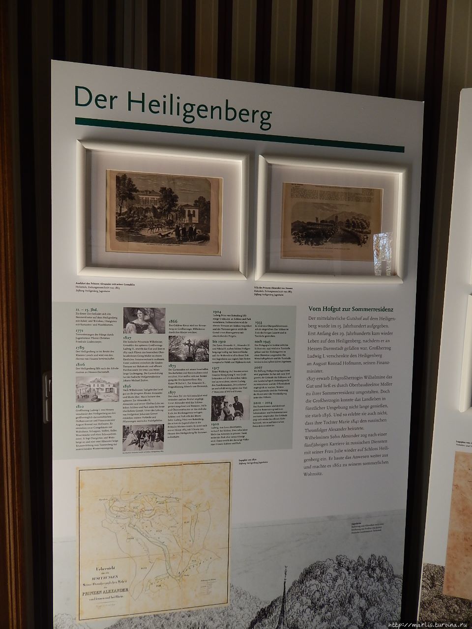 В начале 19 века на холмах над Югенхаймом располагалось имение поставщика сельхоз-продуктов для герцогского стола. Это имение в 1827 году выкупила и пререстроила для себя Вильгельмина Баденская, жена великого герцога Людвига II Гессенского. После 1830 года она со своими детьми Александром и Марией регулярно проводила в Хайлигенберге летние месяцы.