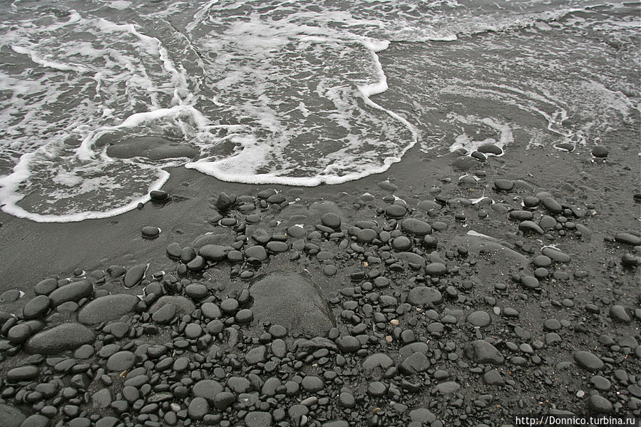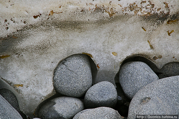 Круглые камни идеально прятались в круглые дырки в снегу. По ним было довольно трудно ходить, ведь вокруг не было ни одного устойчивого камня! И при каждом откате волны море их переворачивало, и они, перекатываясь, издавали очень приятный медитативный звук. Я заснял его на видео, так как иначе трудно понять о чем идет речь. Enjoy!