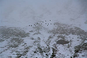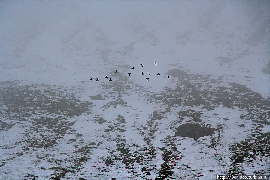 Но кое-кого мы по пути встретили. Чайку-Бургомистра, да и остальных птиц, выныривающих изредка из тумана и потом туда возвращающихся.