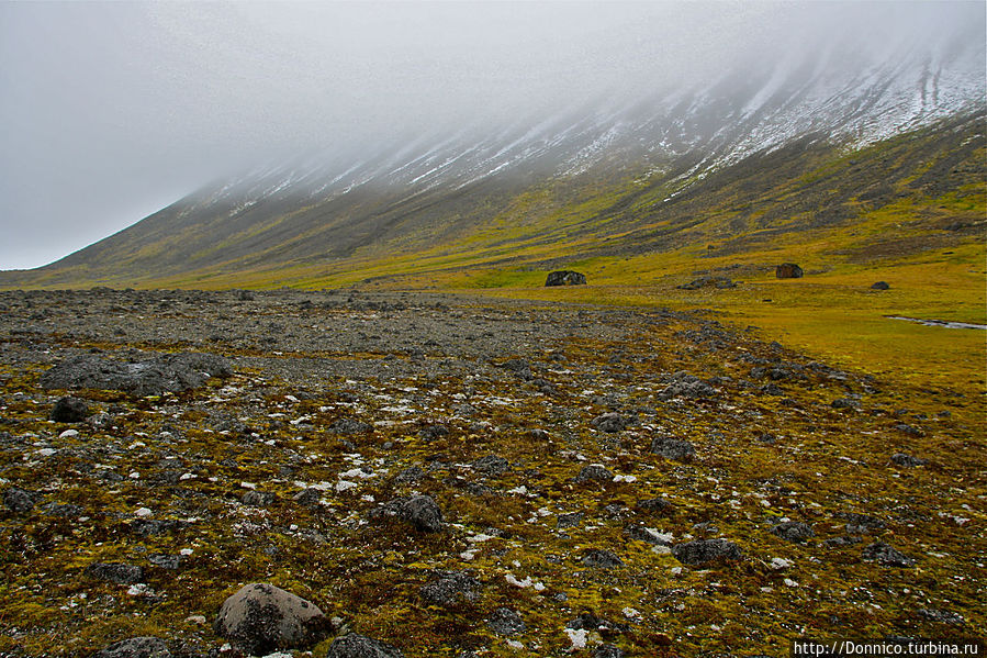На мысе Флора на острове Нортбрук на Земле Франца Иосифа переплелось много всего уникального, но самым-самым пожалуй является его изумрудно-зеленая растительность. Ее трудно встретить и гораздо южнее, например на Новой Земле, а уж тем более здесь на северной широте в 79,50 градусов это наверное недосягаемый результат. Не знаю есть ли еще такое место, ведь острова ЗФИ одни из самых северных в Арктическом океане.