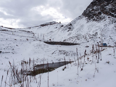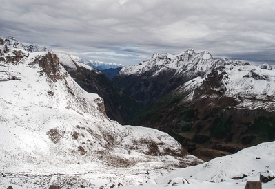 Дорога Гросглоккнер открыта для проезда с мая по октябрь, и мы, можно сказать, успели «в последний вагон». По пути уже попался участок, полностью заметенный снегом. Проезжая часть, разумеется была расчищена, но вокруг…
