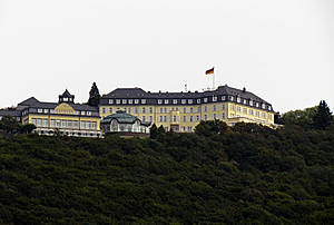 На соседней горе хорошо виден Петерсберг (Petersberg), ныне выполняющий функцию федерального пансиона