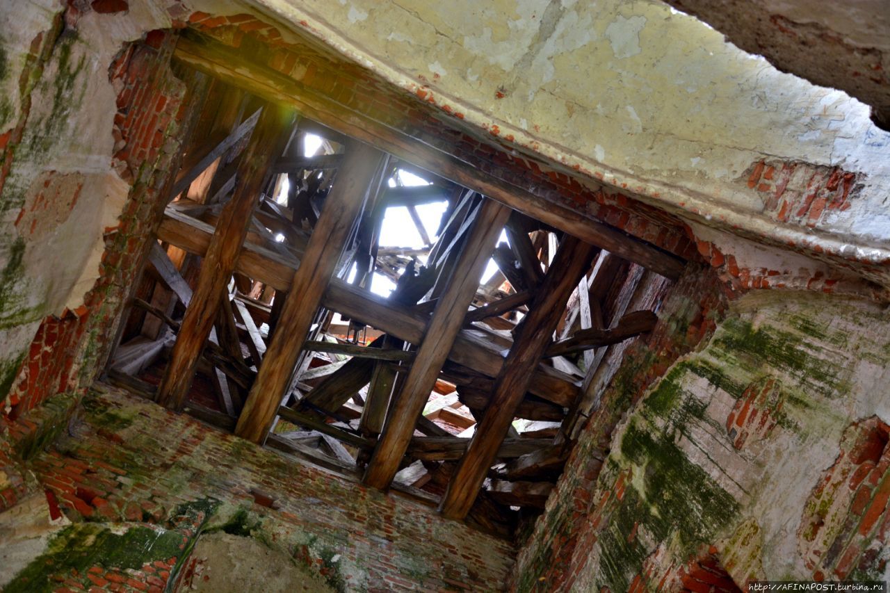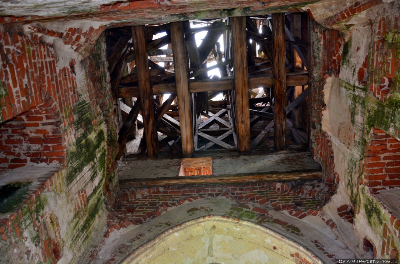 Удивительно, но в башне сохранились перекрытия из деревянного бруса, значит пожара в кирхе не было.