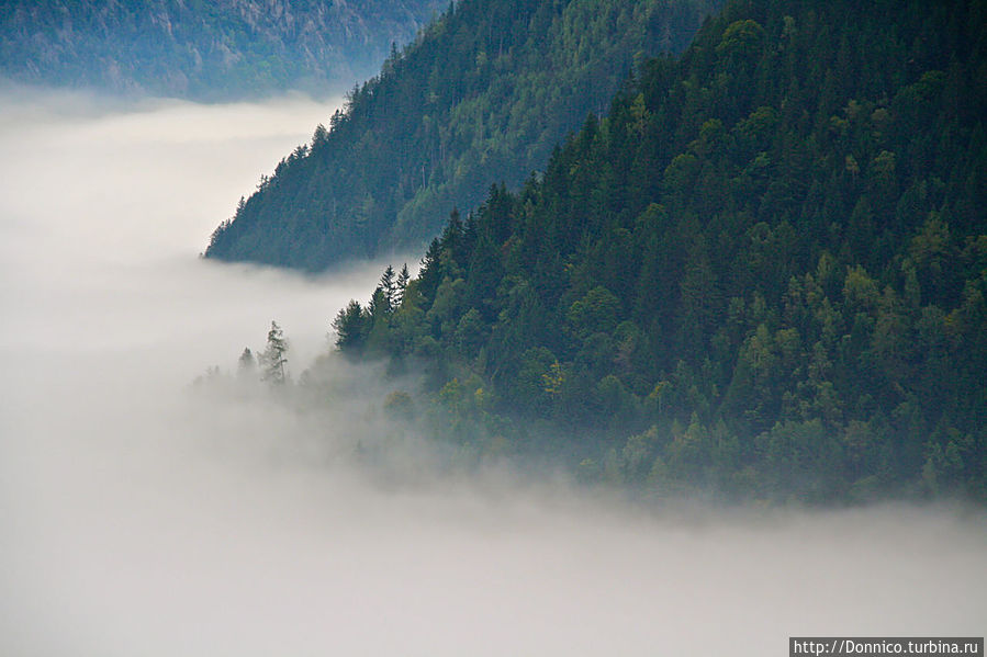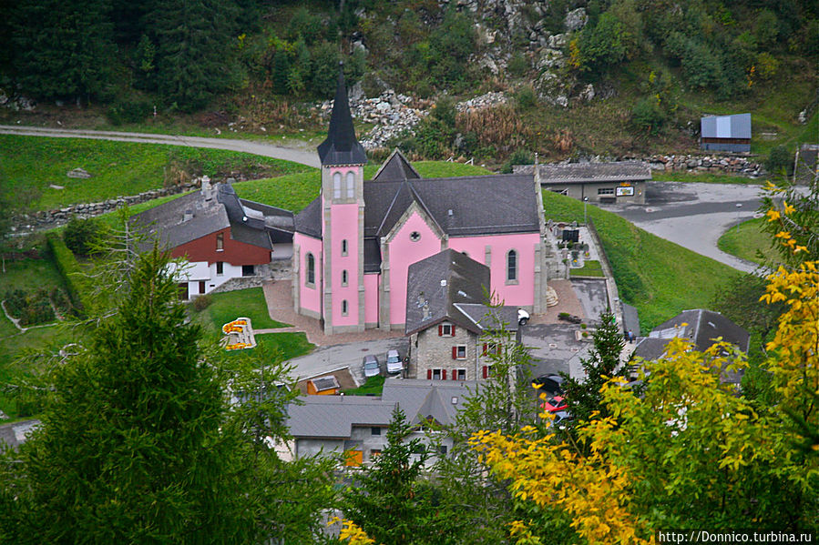 В этой пространственно-туманной дырке внизу под нами виднелась красивая долина и неожиданно розовая высокая церковь, смотрящаяся с этой точки как игрушечная.