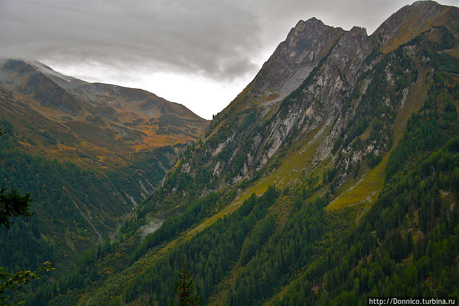 Еще выше, сделав остановку в районе перевала Col de Forclaz, мы наконец увидели то, ради чего мы выбрались в горы именно в это время года — одетые в осенние цвета склоны Альп.