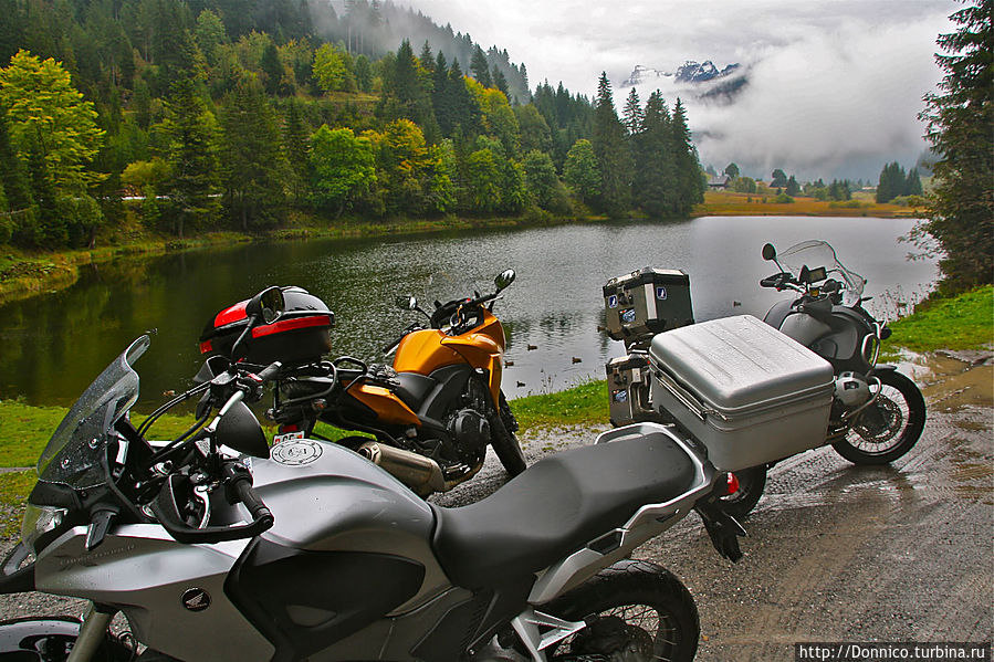 Надо сказать, что дождь в этот момент полностью стих. И только тяжелые серые тучи, висящие прямо над головой, не забывали лишний раз напомнить нам о своем присутствии, касаясь иногда макушки. Так мы добрались до дома Сергея. Леха, наш третий участник по поездке на мотоциклах, прилетел рано утром из Москвы и был уже на месте. Поглядывая в мрачно-серое женевское озеро, хорошо просматриваемое сквозь капли на стекле, он явно с аппетитом, свойственным человеку, выехавшему из квартиры в Москве в 3 часа утра, приканчивал последние утренние круассаны и пан о шоколя, запивая их чашкой горячего кофе...
